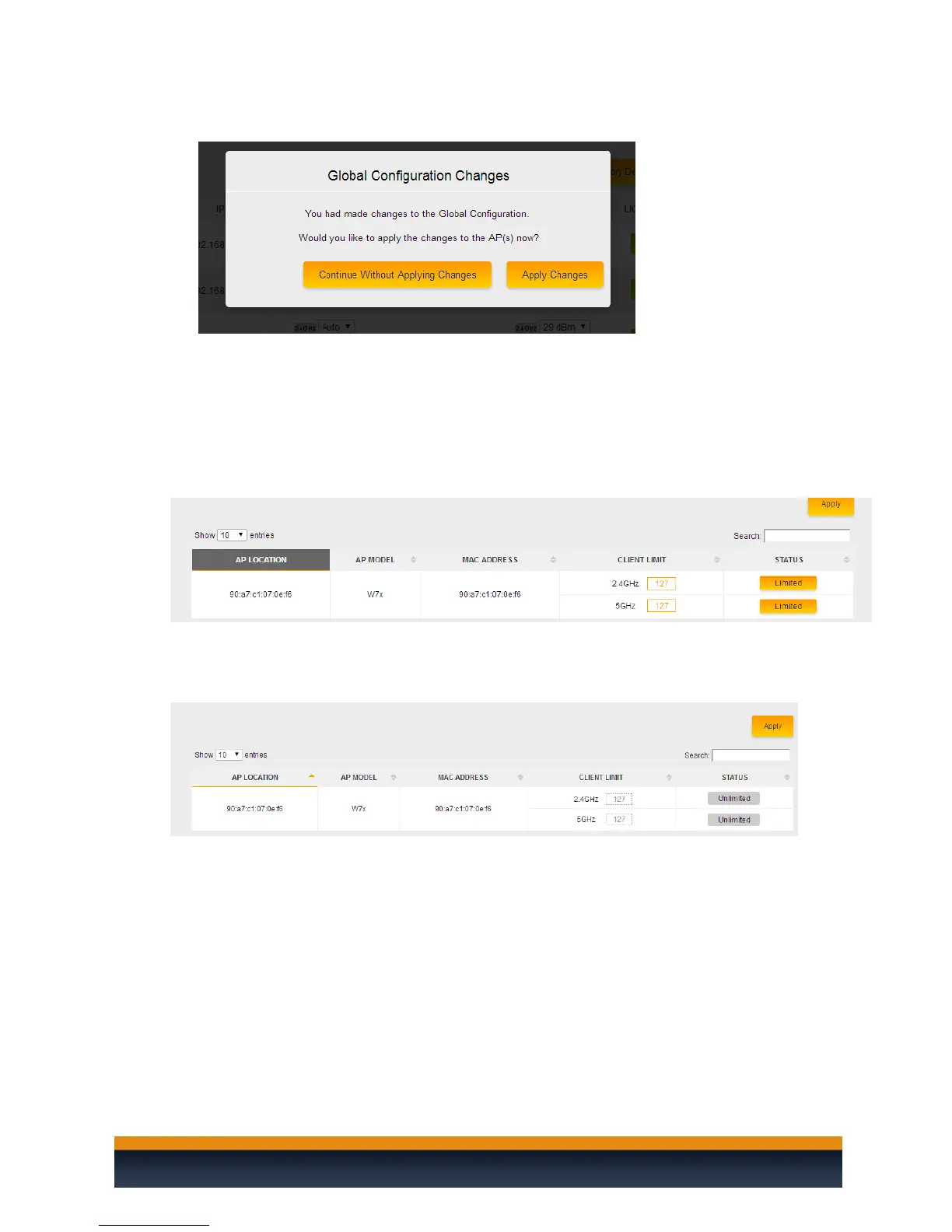 If you wish to disable the client limit for a W7 you can simply click on limited button next to the band