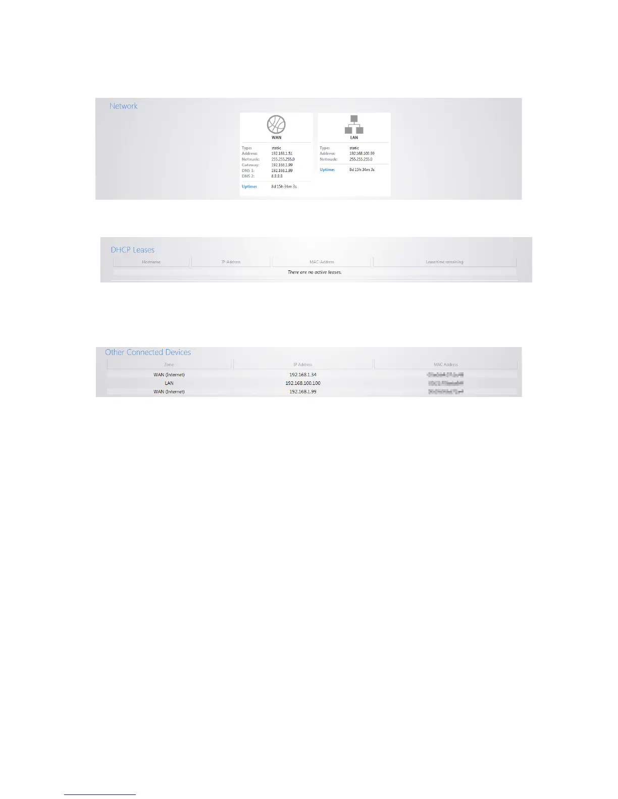 The DHCP Leases section shows the devices that have received an IP address form the router.