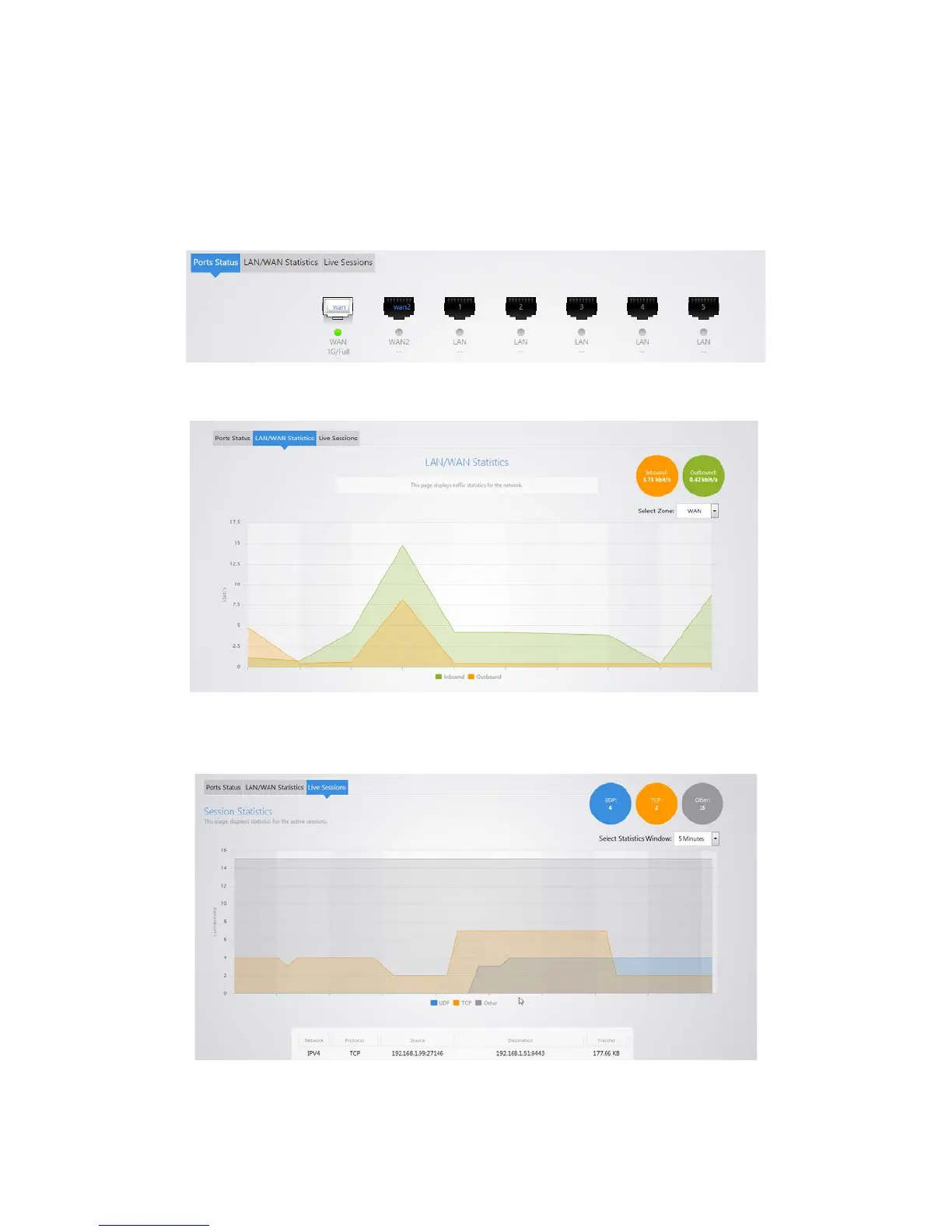 The Live Sessions will display information on active connections. This information includes the protocol