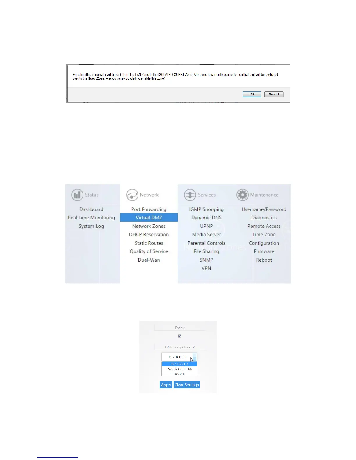 Note: When you enable the Virtual DMZ you will still be able access the routers GUI remotely via