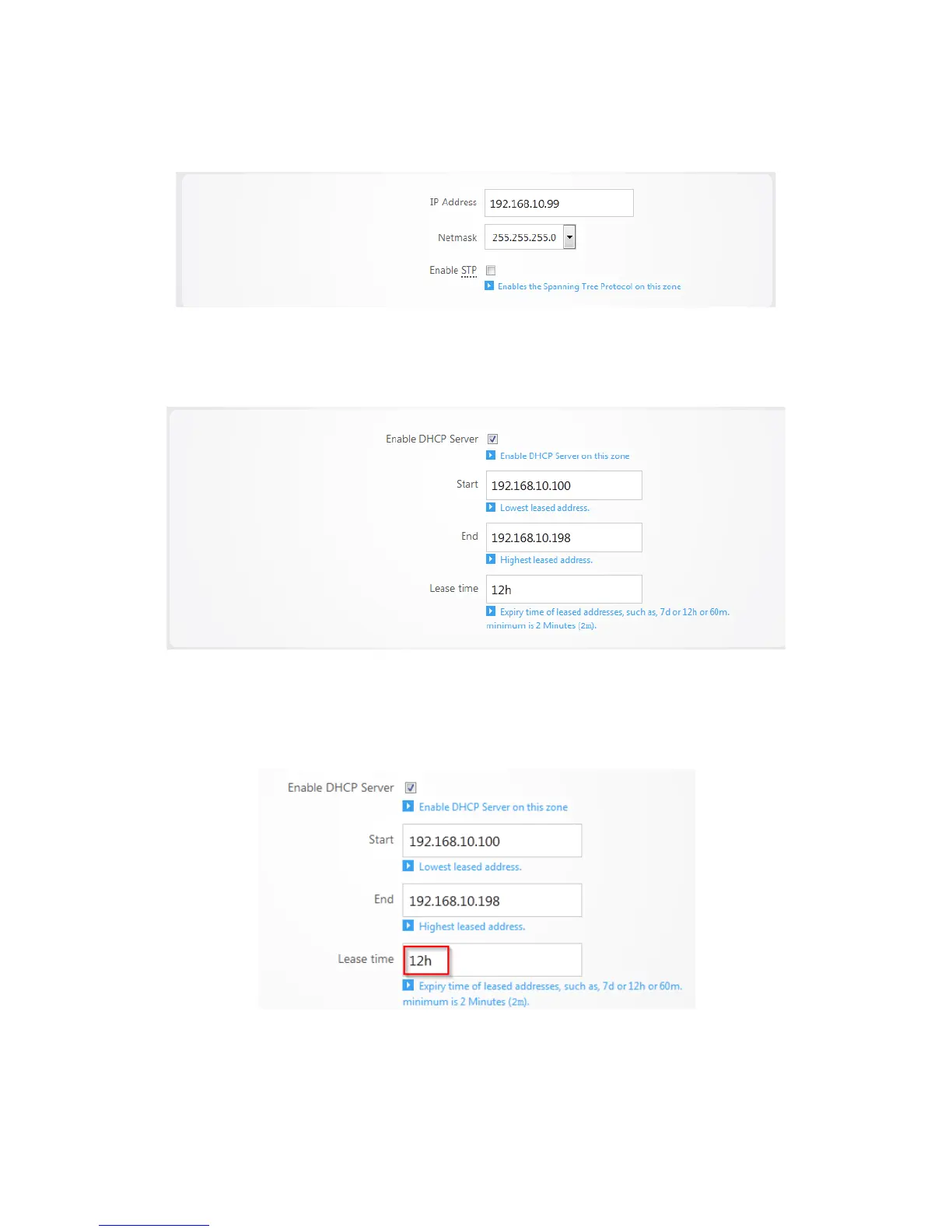 5. The Lease time field allows you to view/modify DHCP IP address lease time. The following format