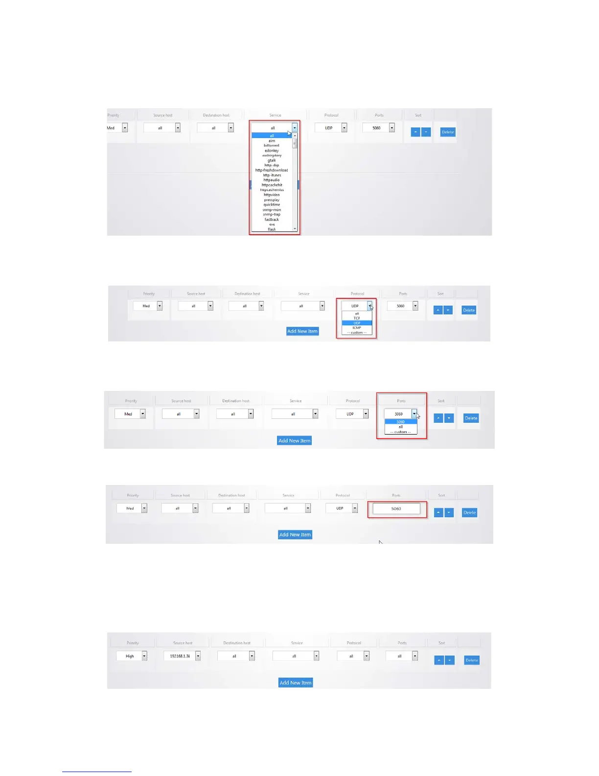 9. The Ports column allows you to select which ports the data you are prioritizing uses. Click the drop