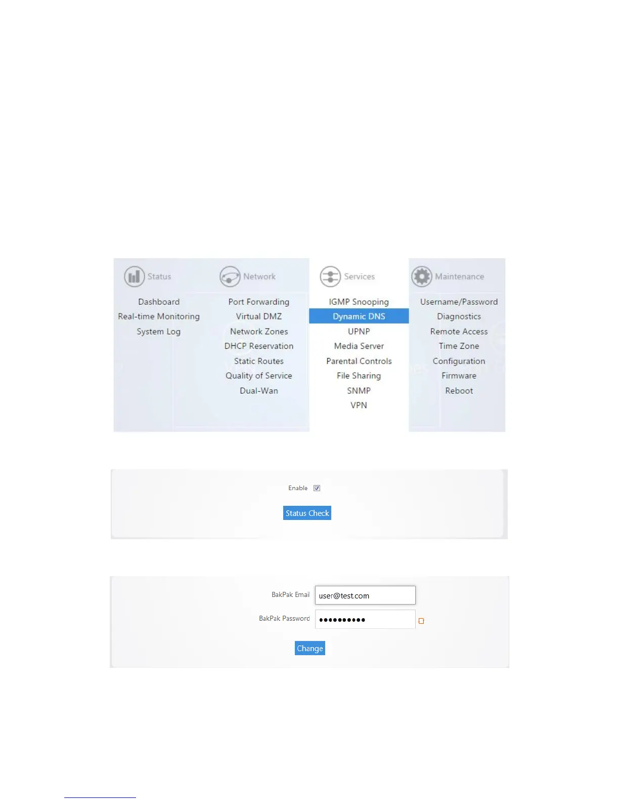 Pakedge DDNS take the following steps. BakpakDDNS is only available on the RE-2 and RK-1.