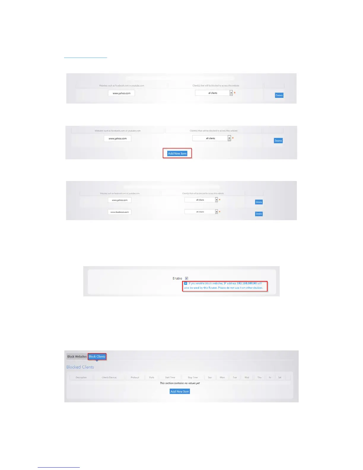 network. There is a message on the Block Websites page to warn you about this. Ensure that the IP