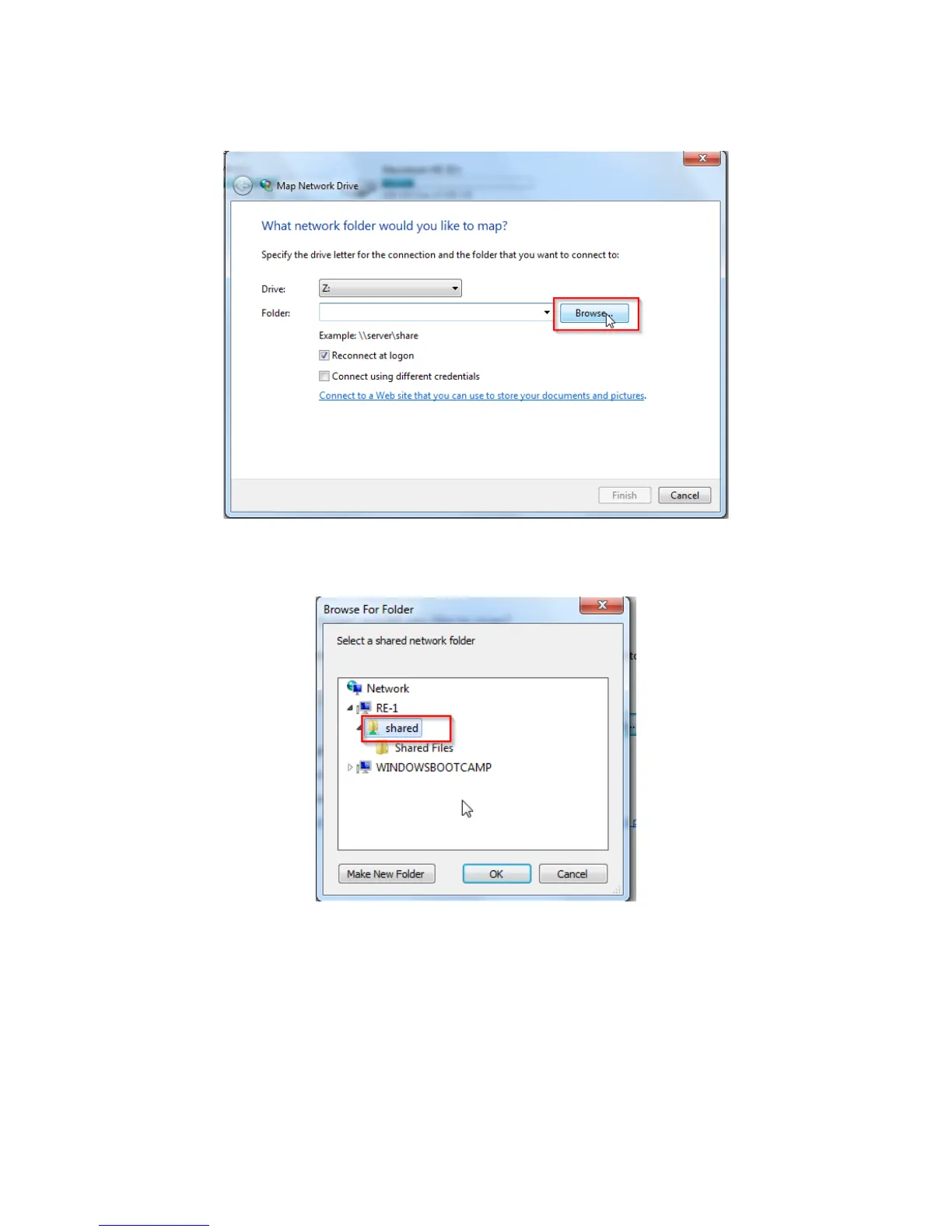 4. Click RK-1/RE-1/RE-2 to expand it. Click the folder you want to map underneath it to select it. Click