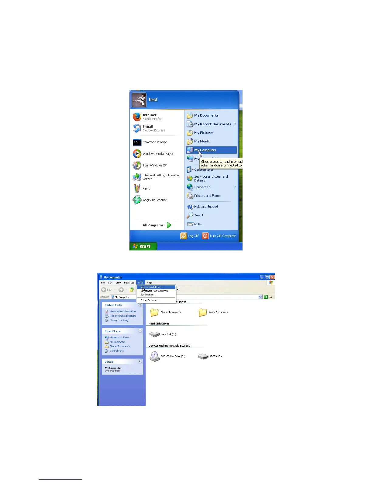 To map a USB drive in Windows XP:
