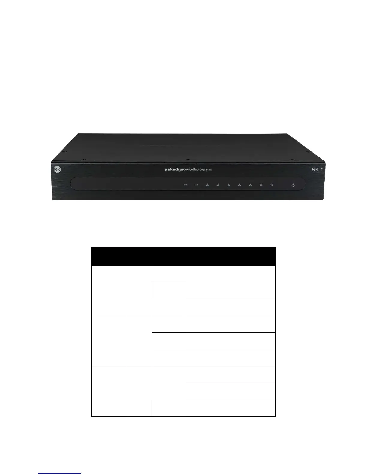 Table 1: LED Explanation (From Left to Right)