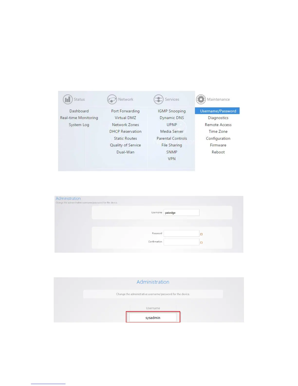 1. After you’re logged into the router, navigate to Maintenance >Username/Password.