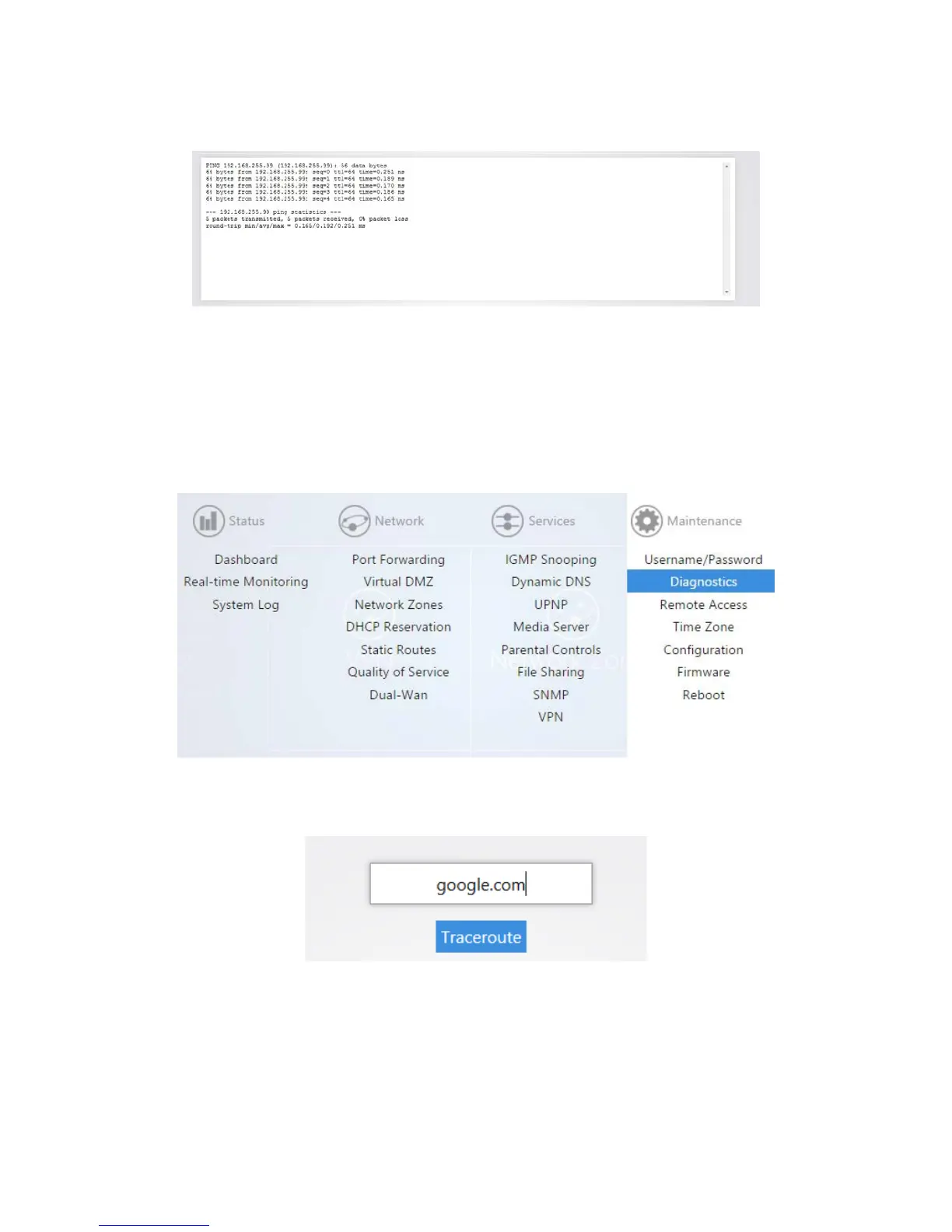 2. Click traceroute. If you wish to perform a traceroute to a different website or IP address you may