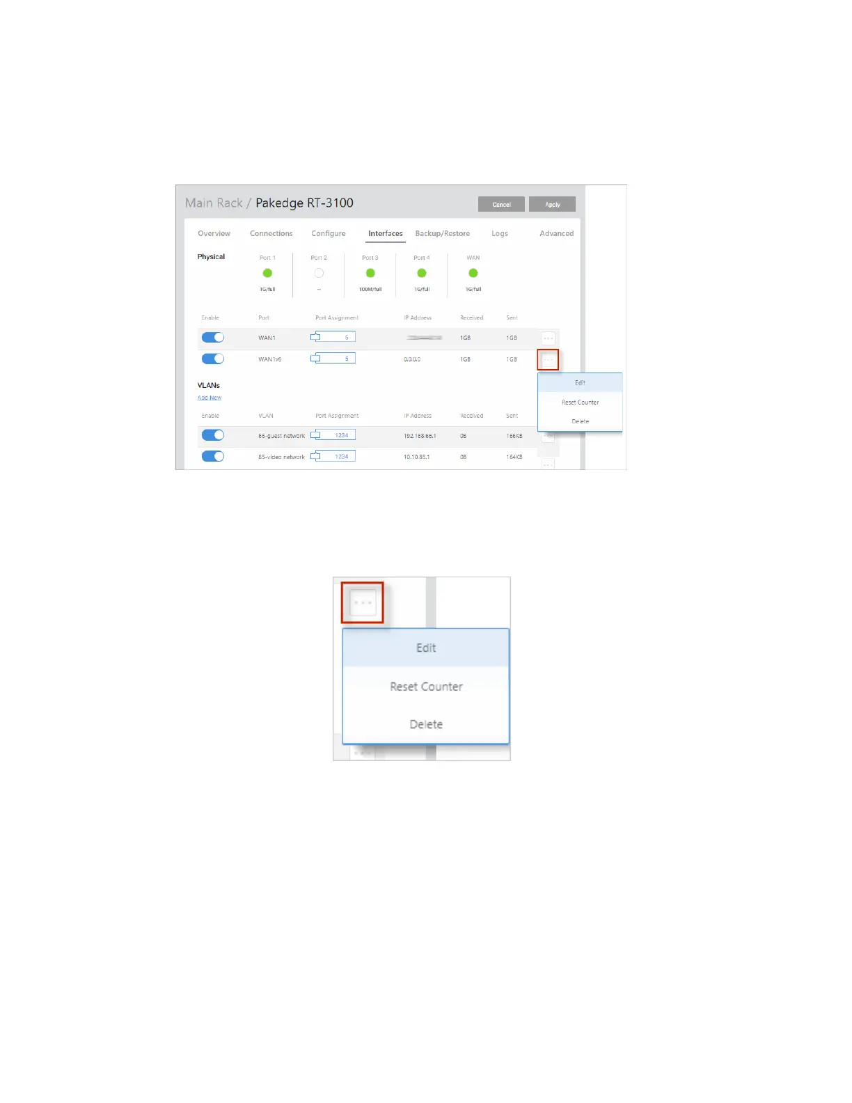 To edit an Interface’s assigned IP Address, Subnet Mask, Gateway, or DHCP Settings: