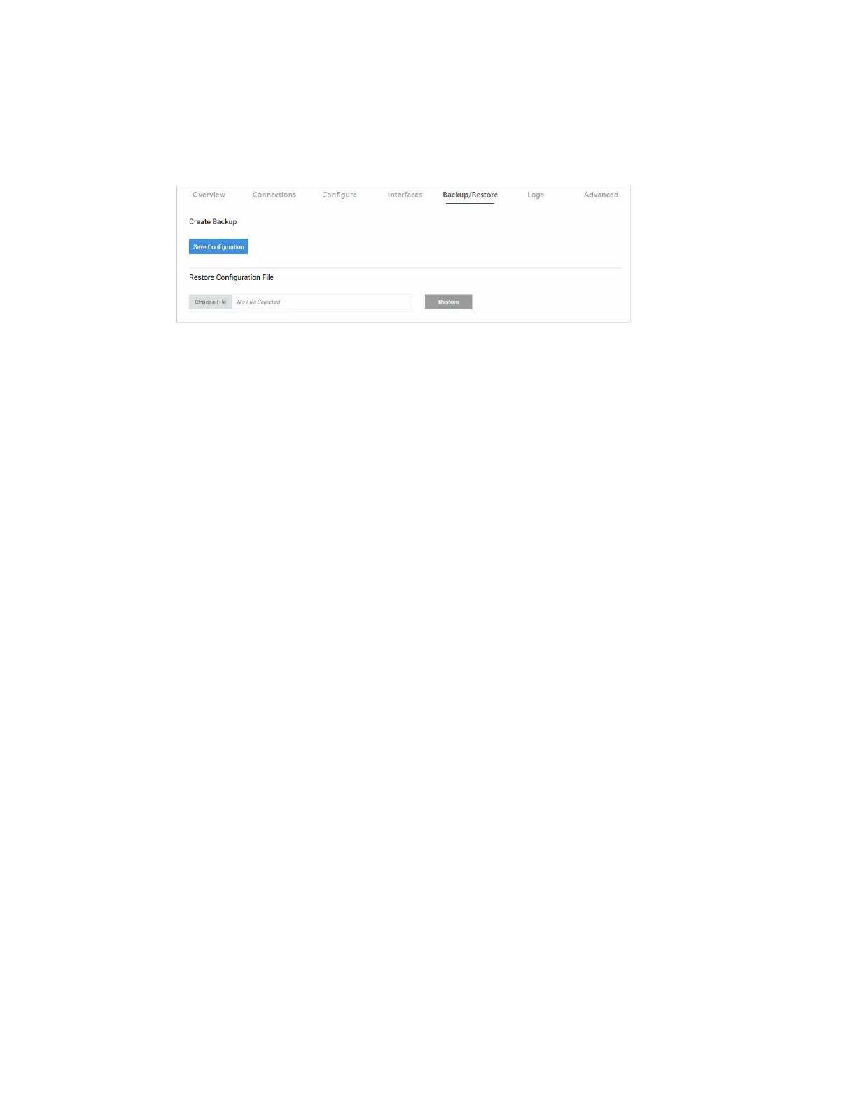 The Backup/Restore tab allows you to save a configuration (backup) and restore the