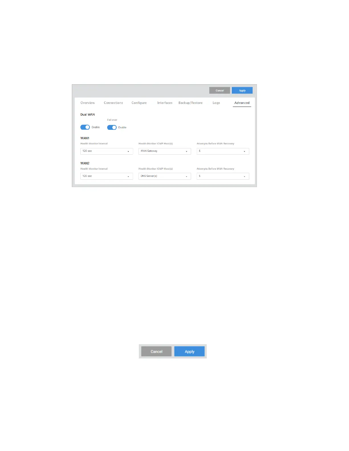 2. Under each WAN, choose how and when the primary WAN should switch to the