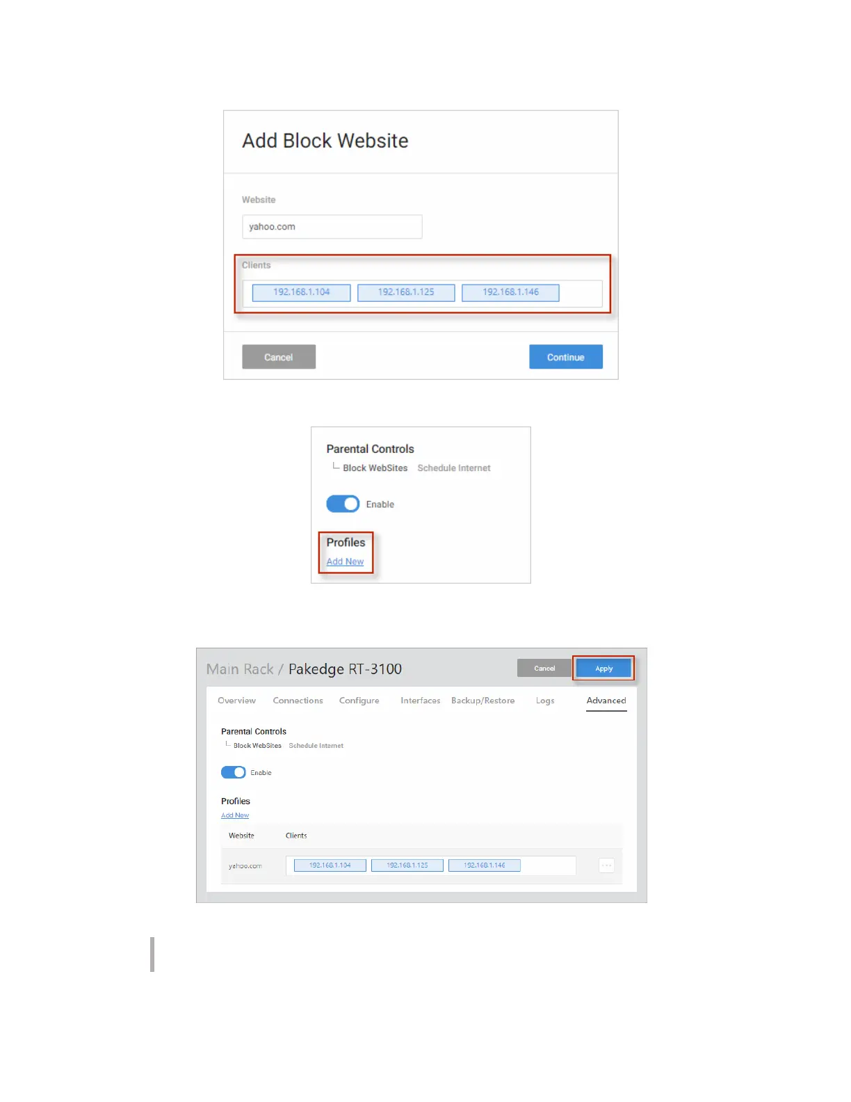 6. When you are finished, click Apply at the top of the page. The websites you entered are