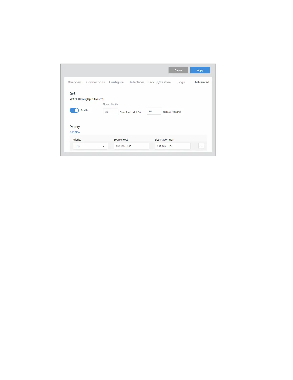 Restrict WAN upload and download speeds
