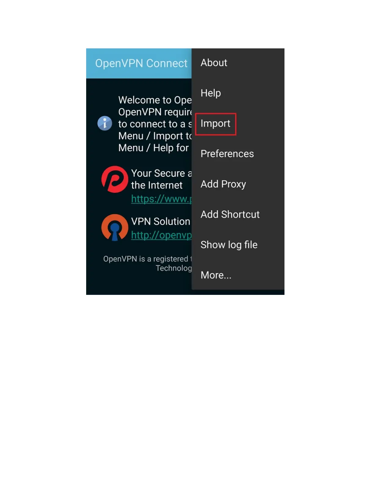 Tap Import Profile from SD card, locate your downloaded OpenVPN Config file, then