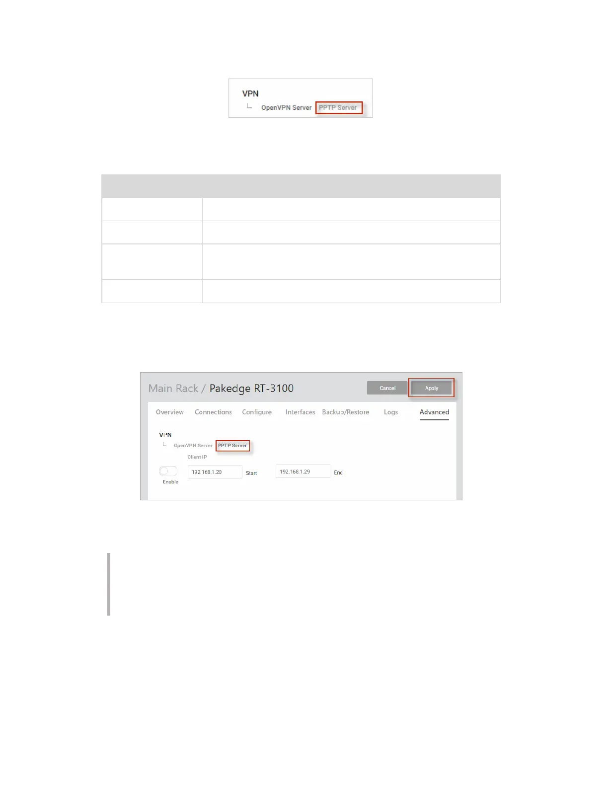 Enter IP address for PPTP Server.