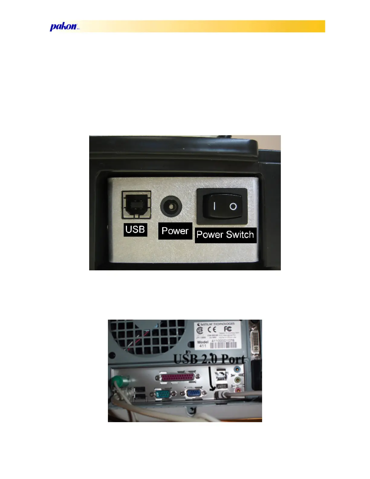 5. Connect the USB 2.0 cable to the back of the computer, in a USB 2.0 port. Do not plug in to