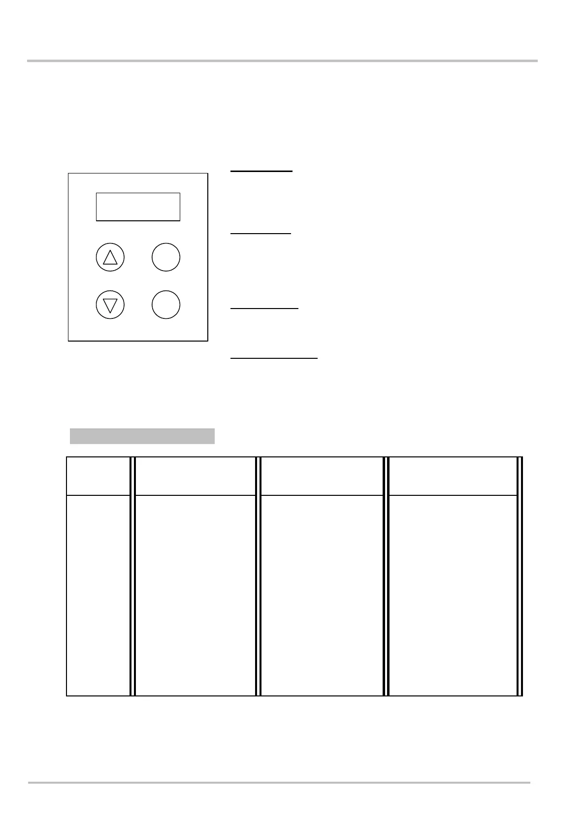 Downwards move in menu, from STATUS-LEVEL to P-