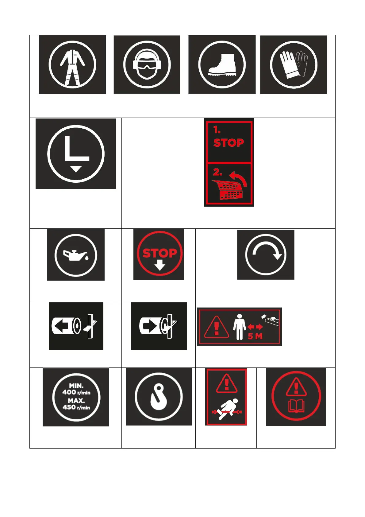 Read the instruction manual: Do not wear loosely hanging clothes: Use eye guards and hear-