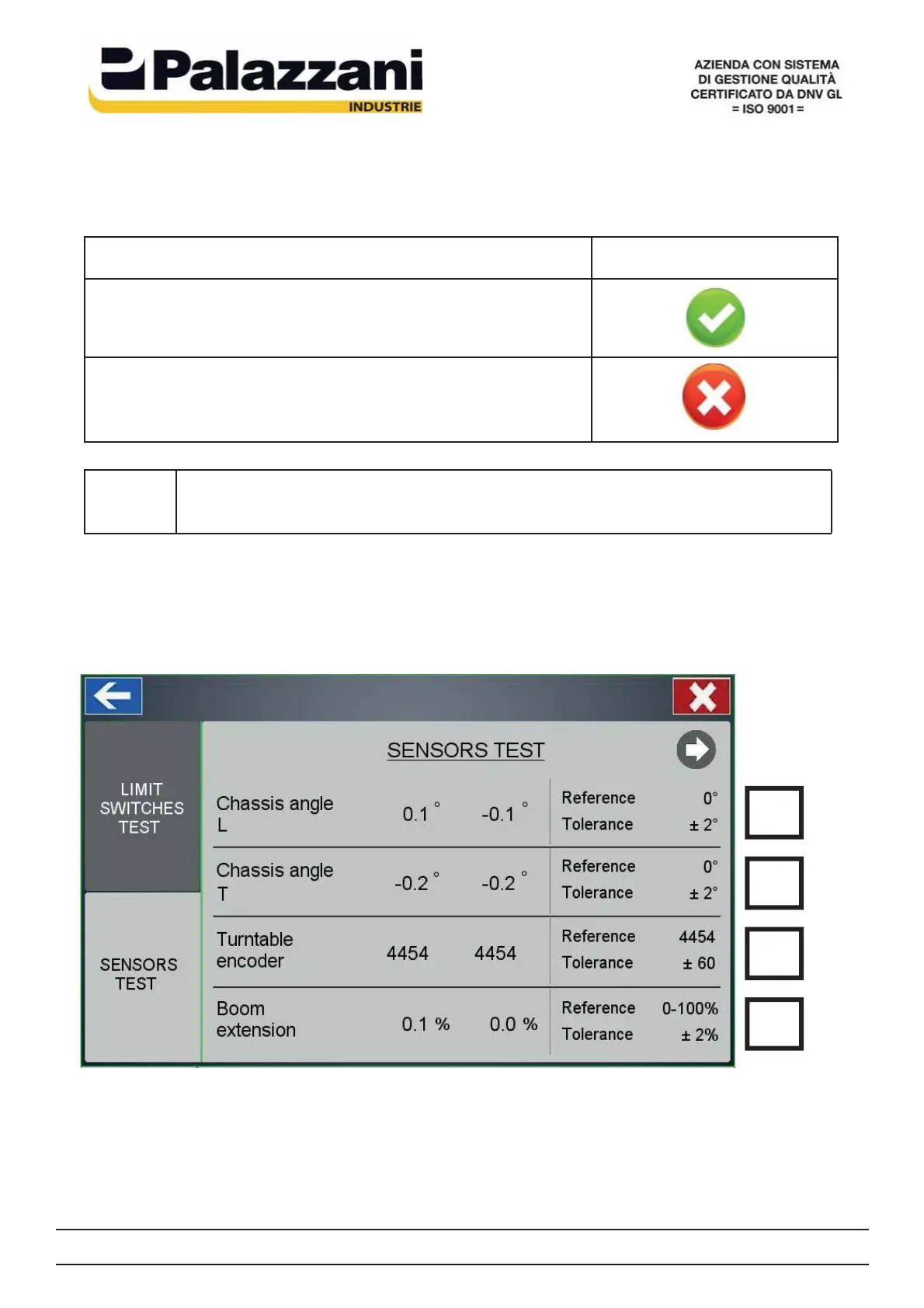 To do this test, set the stabilizers pins with the confi gurations of the following table