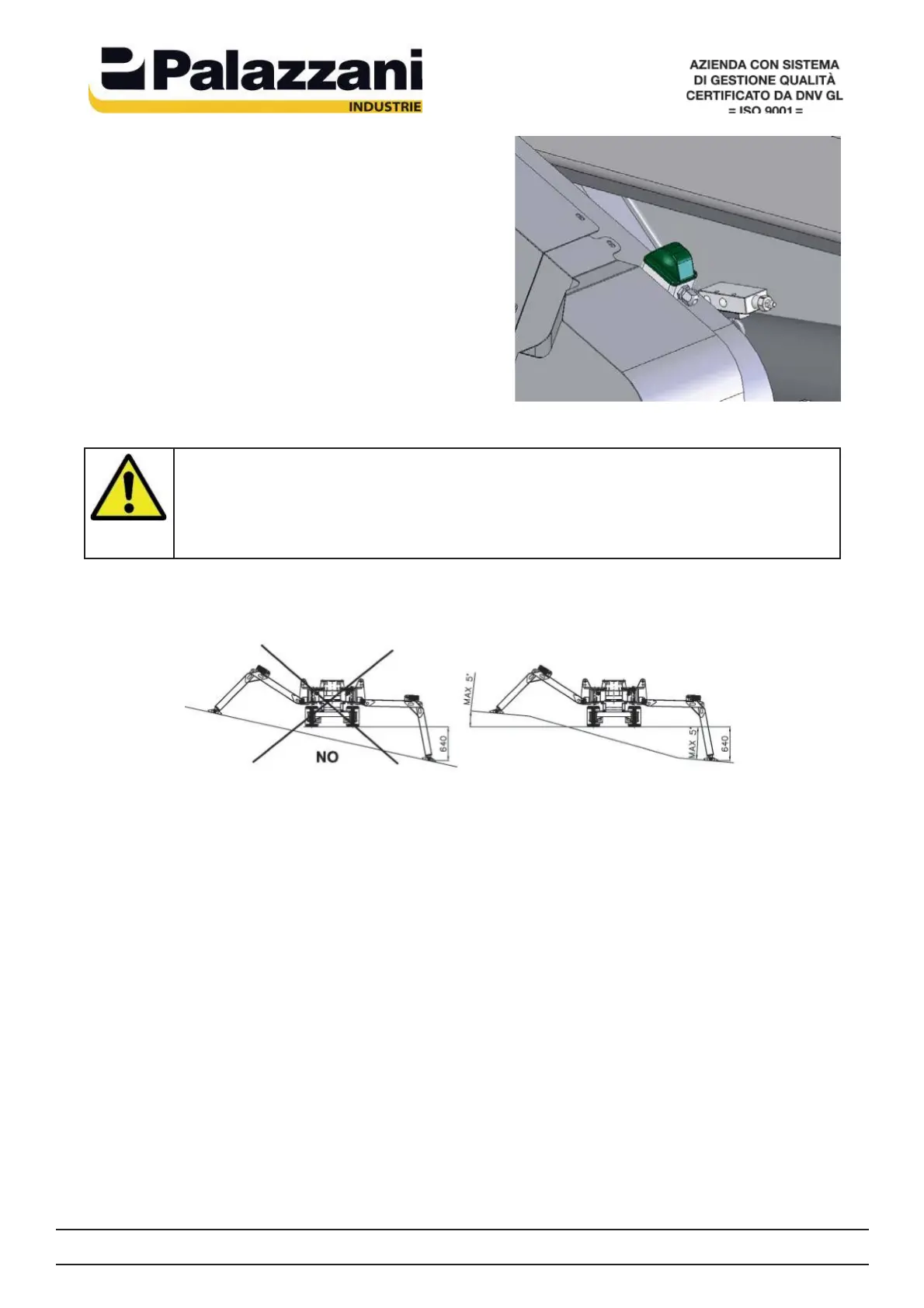 not exceed 5°, independently from the escarpement, to avoid the machine