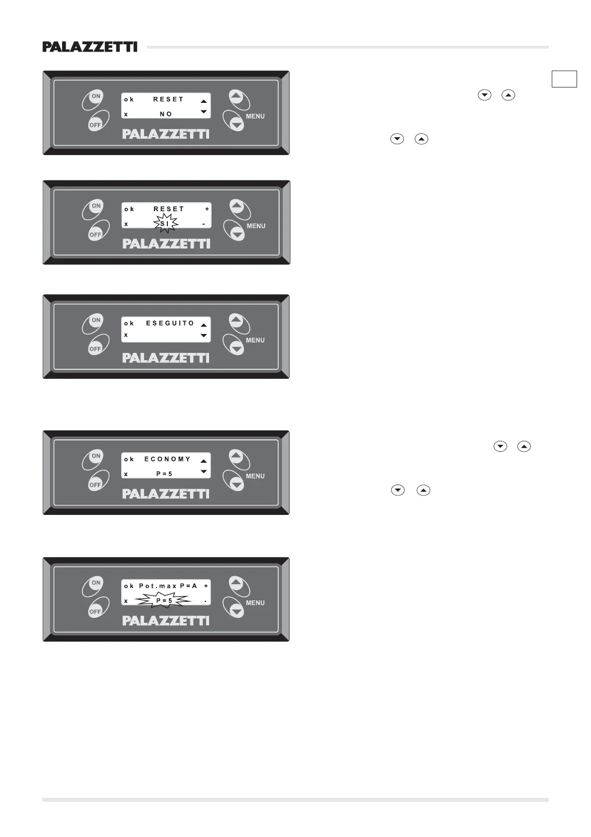 12) Premere il tasto OFF per uscire dal menù RESET.