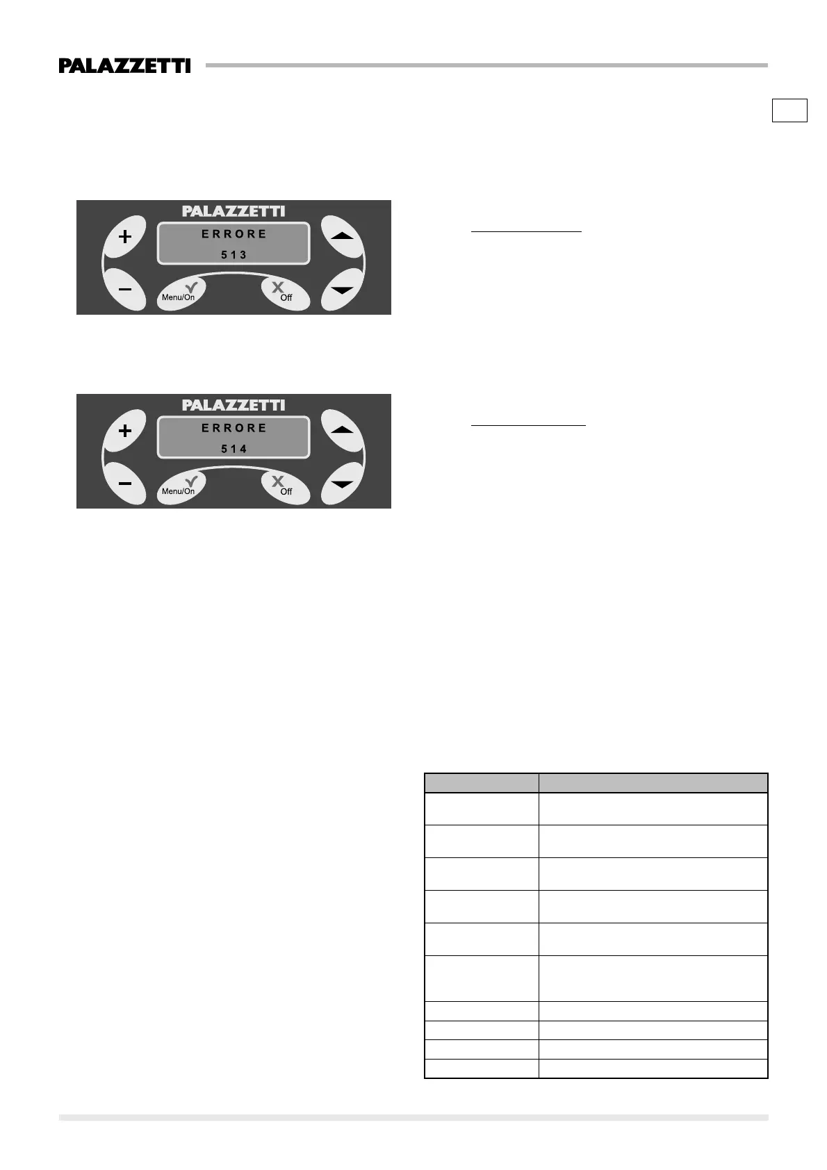ERRORE 513 Allarme temperatura pellet