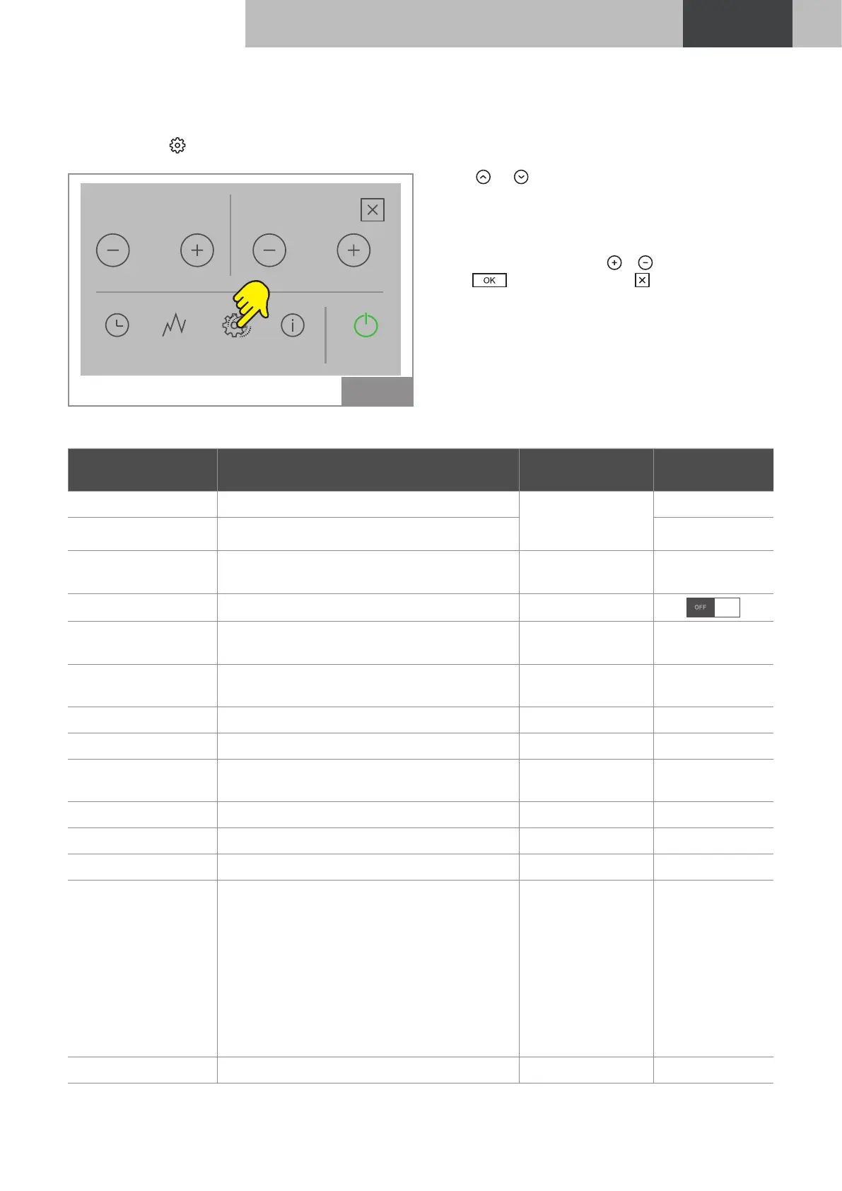 Pulse el icono para acceder al menú parámetros.