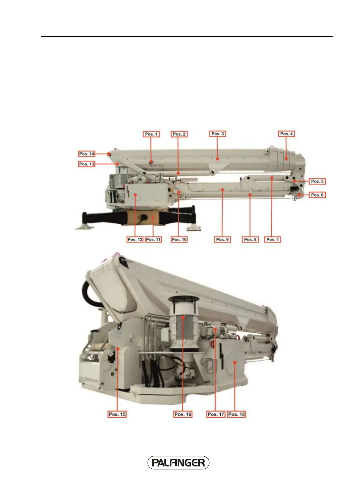 The illustrated crane is an example and shows components which may be optional on your unit,