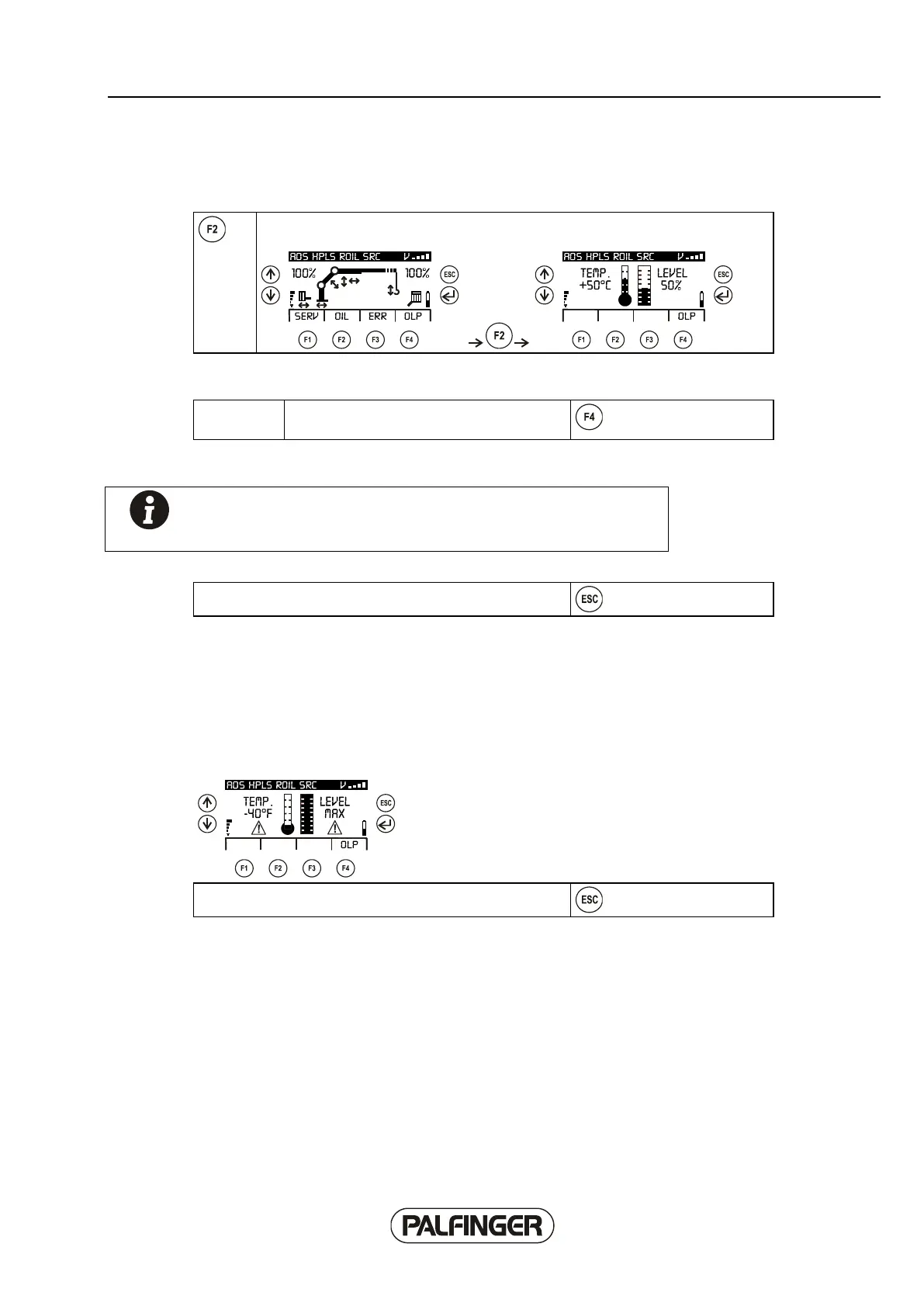 The current oil temperature and the current filling level of the tank can be displayed using the 'Oil