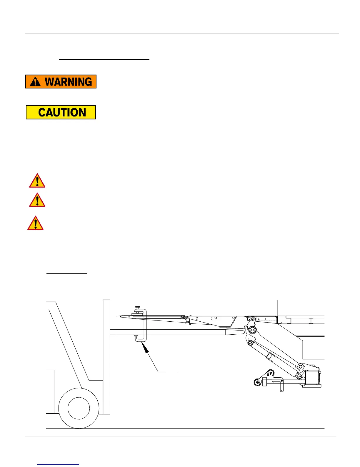 1. Hoist Platform: Unfold platform manually and clamp forklift forks, overhead crane or equivalent to