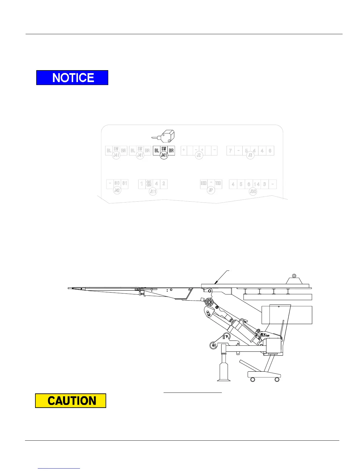 To adjust the tilt cylinder during installation, disconnect the B-15 sensor at J41 on the control board.