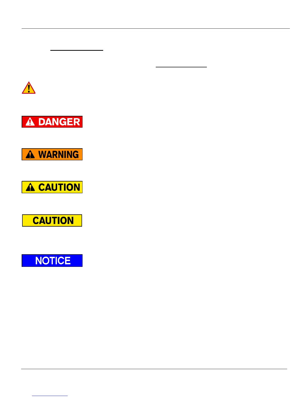 This manual follows the guidelines set forth in “ANSI Z535.4-2007” for alerting you to possible