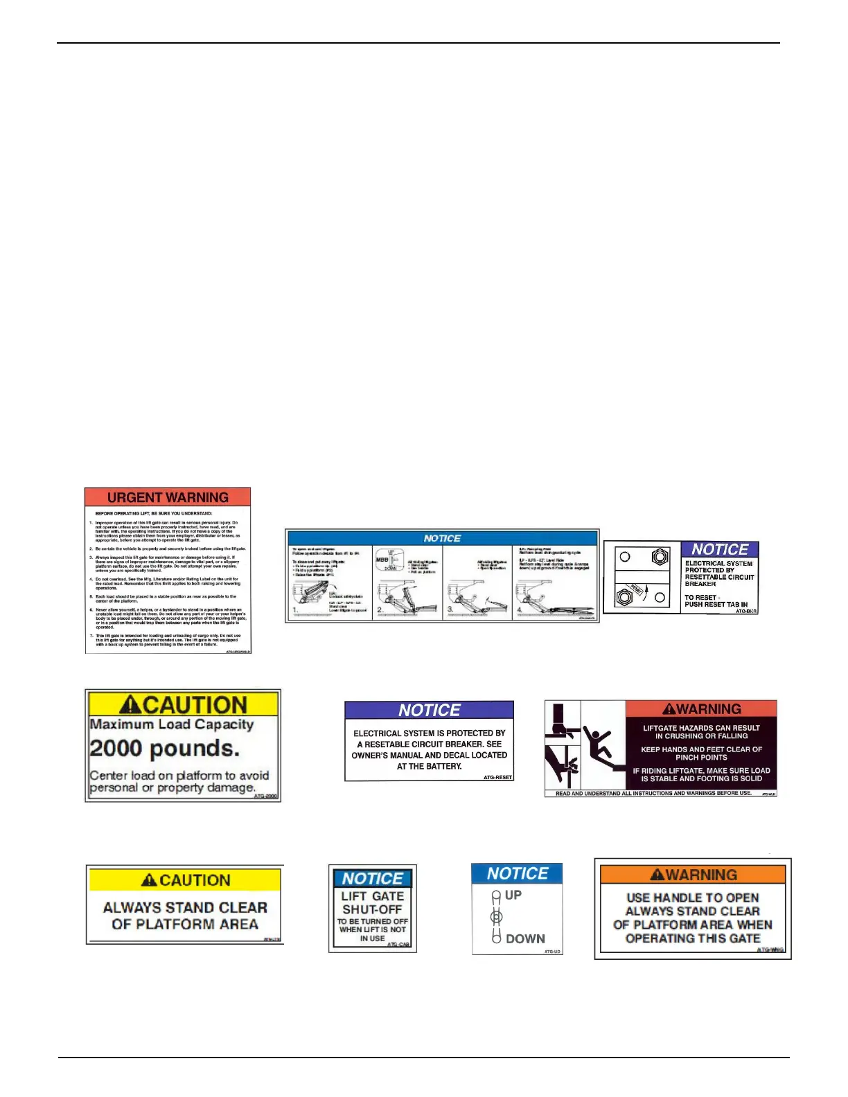 side of liftgate to be read by operator. This is typically a combination of decals on the liftgate and