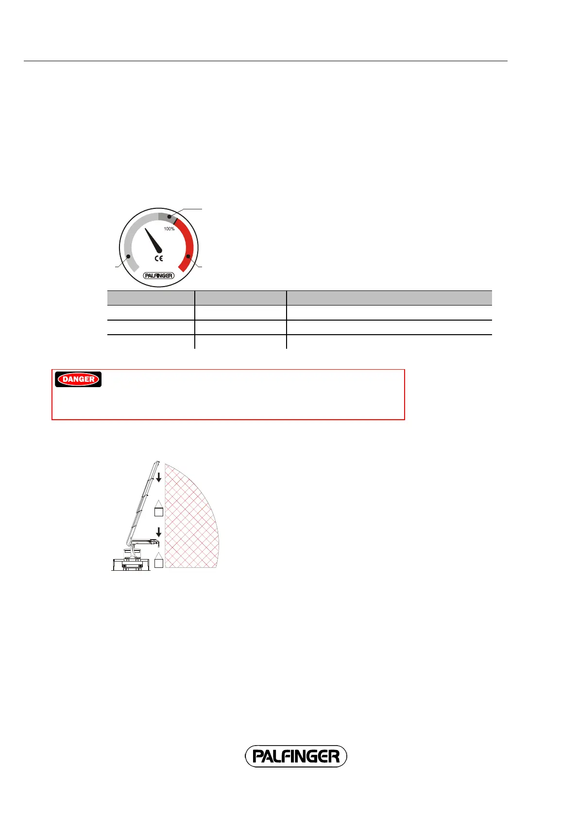 If the crane is equipped with a capacity indicator, it shows the current load status on a three-color