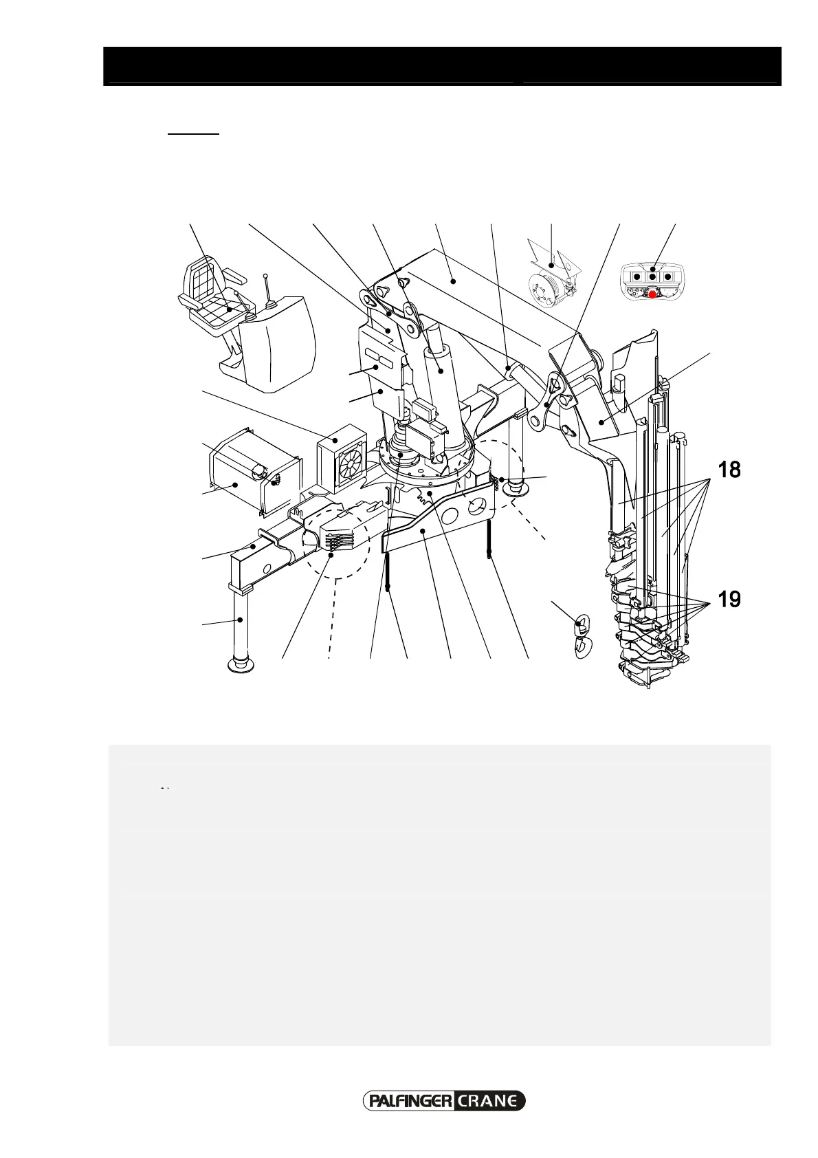 1 Control unit (crane support) 13 Main boom