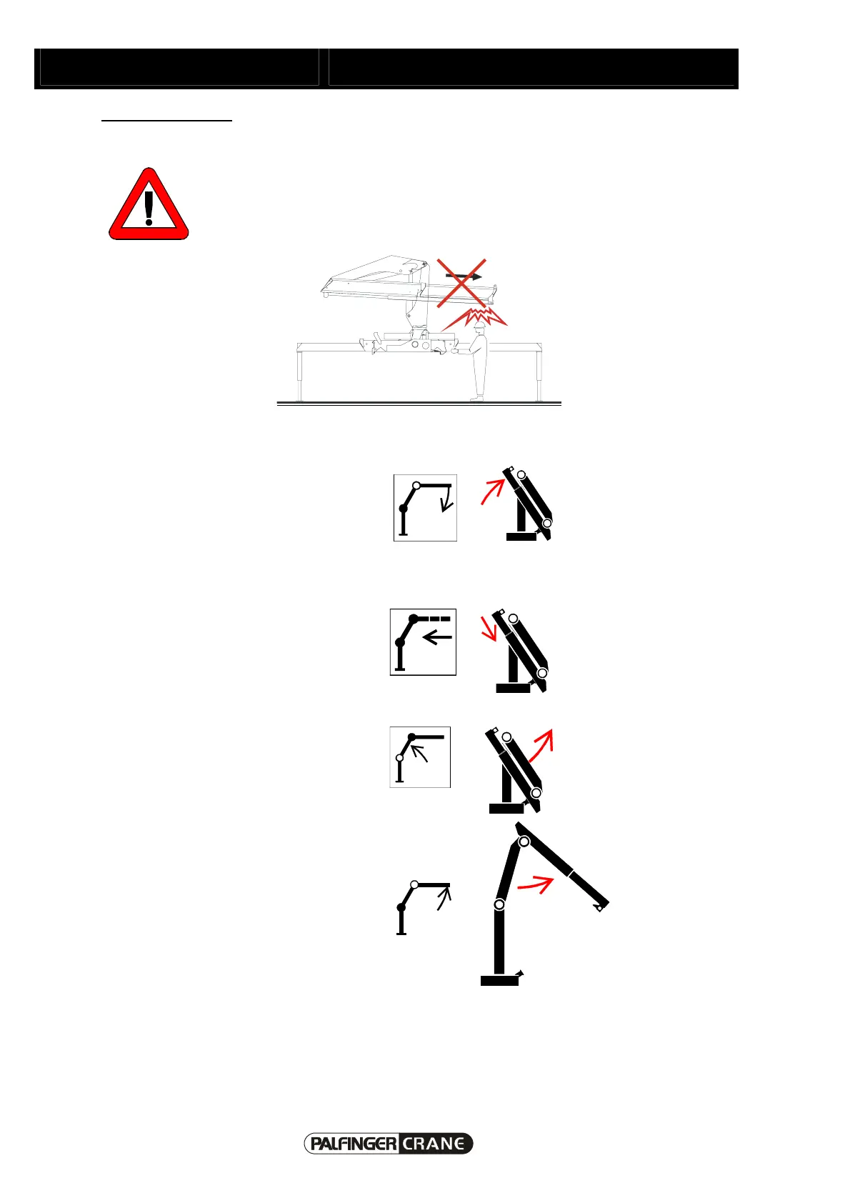 The thrusting arms may only be extracted with the main boom being in nearly vertical position.
