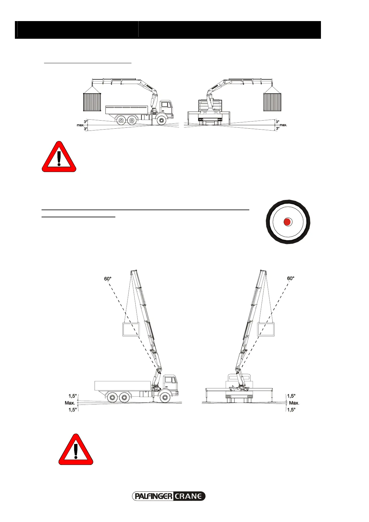 When working crane position beyond 60° the vehicle has to be completely