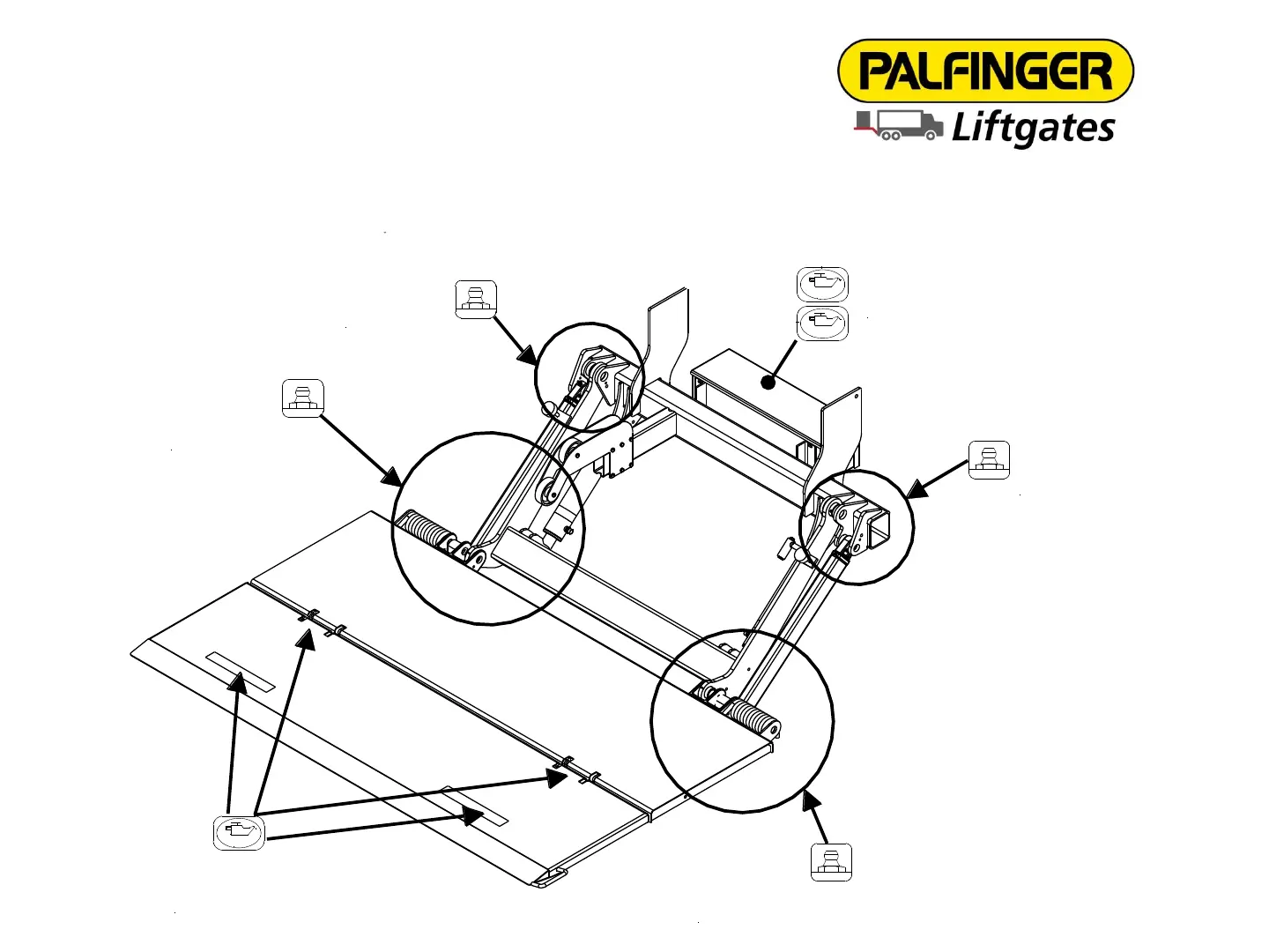 3. Cycle platform up and down several times. Lubricate and grease all points again.