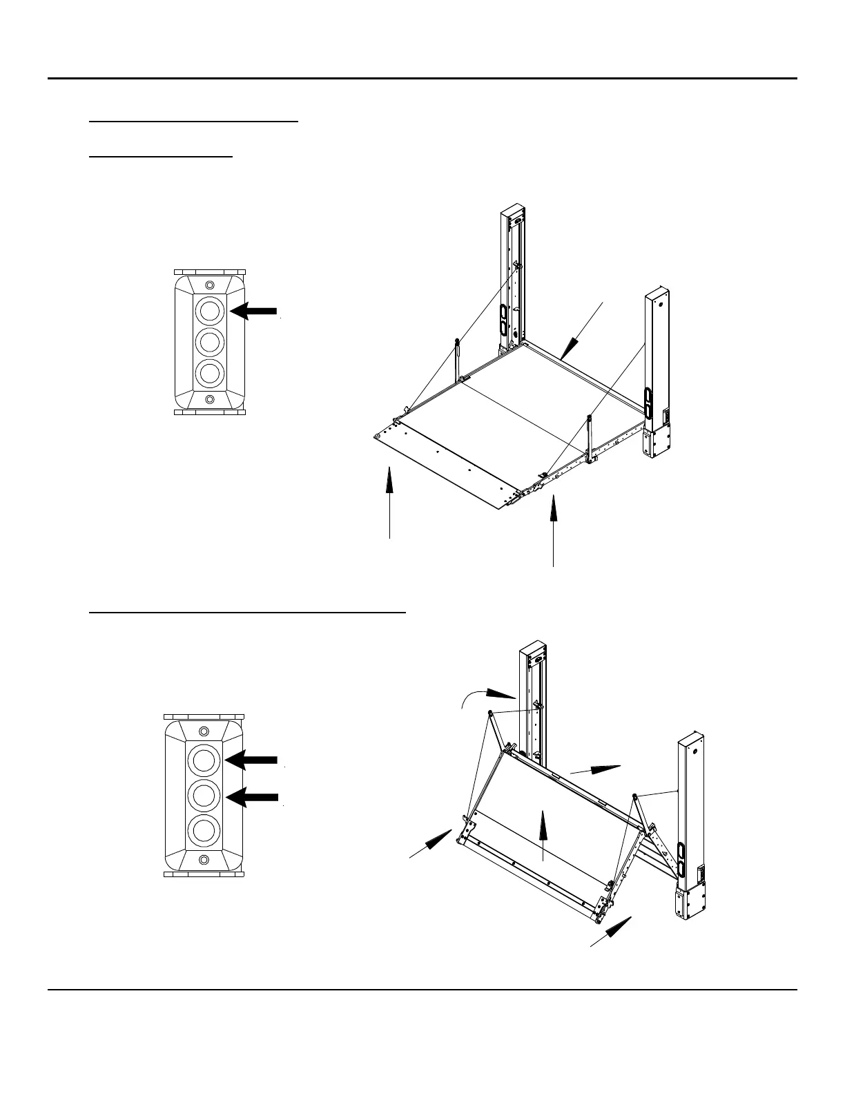5. Bleeding the system: With the platform at bed level, push the “UP” button for thirty (30) seconds. This
