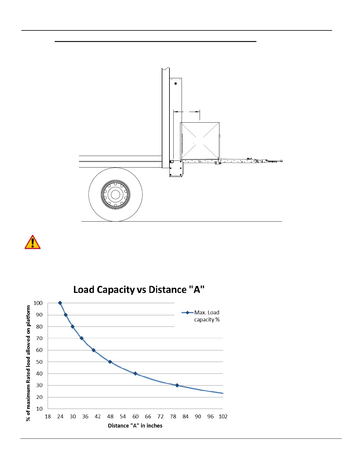 By increasing this distance, the maximum load of the lift gate is decreasing. Make sure not to overload