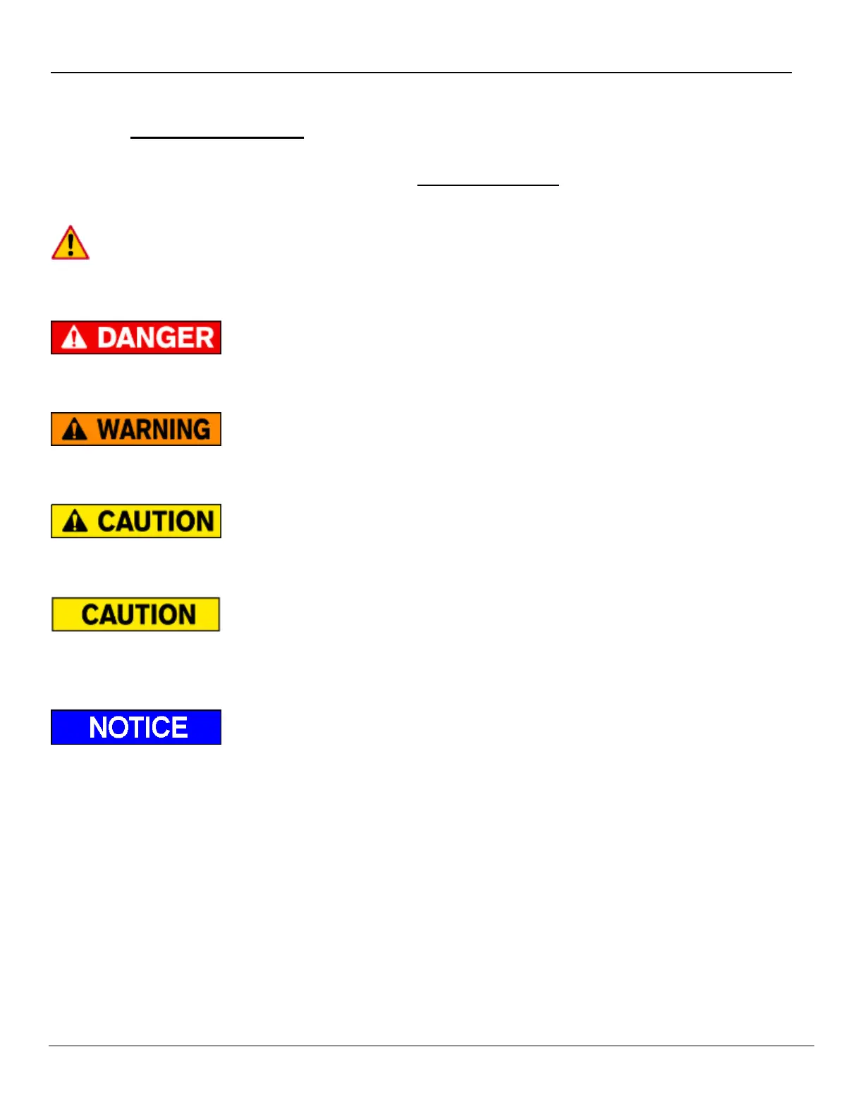 This manual follows the Guidelines set forth in “ANSI Z535.4-2007” for alerting you to possible haz-