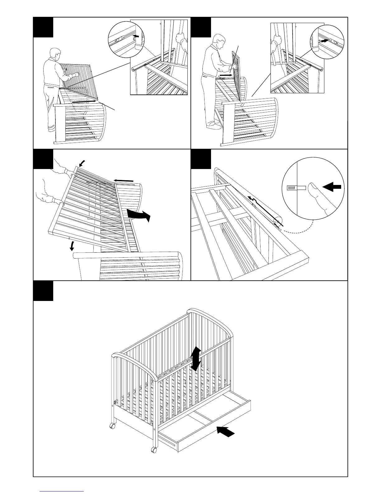 PALI Crib - Step 6: Apply Dropside; Step 7: Insert Drawer