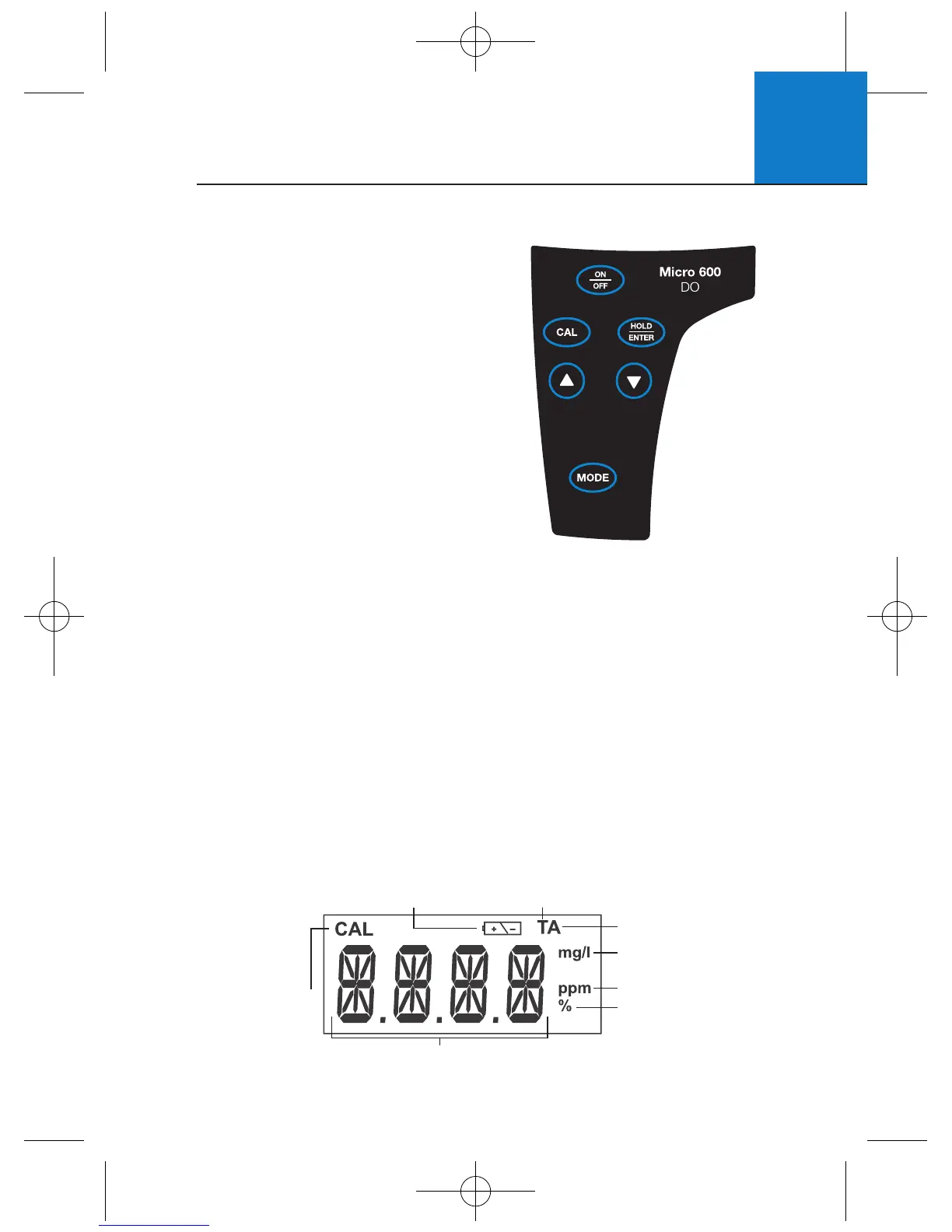 “CAL” (when meter is in calibration mode) and low battery condition.