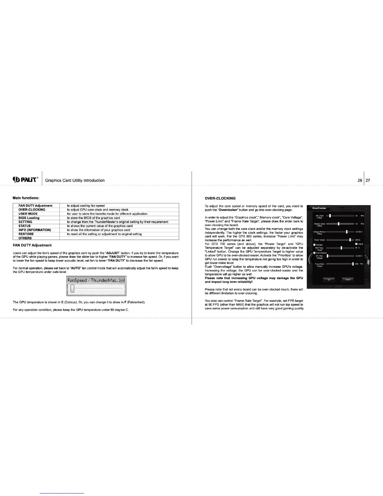 Palit Nvidia GeForce - Fan Duty and Cooling Control; Overclocking Graphics Card Performance