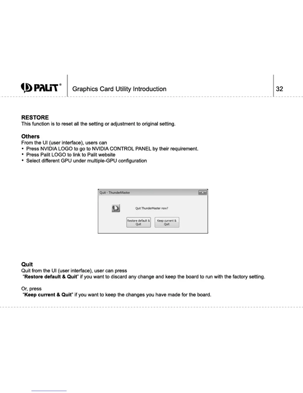 Palit Nvidia GeForce - Resetting Settings to Default; Additional Utility Options; Exiting the ThunderMaster Application