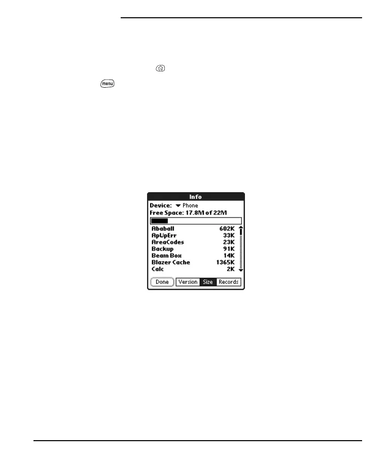 Size displays the size (in kilobytes) of applications and data on your Treo.