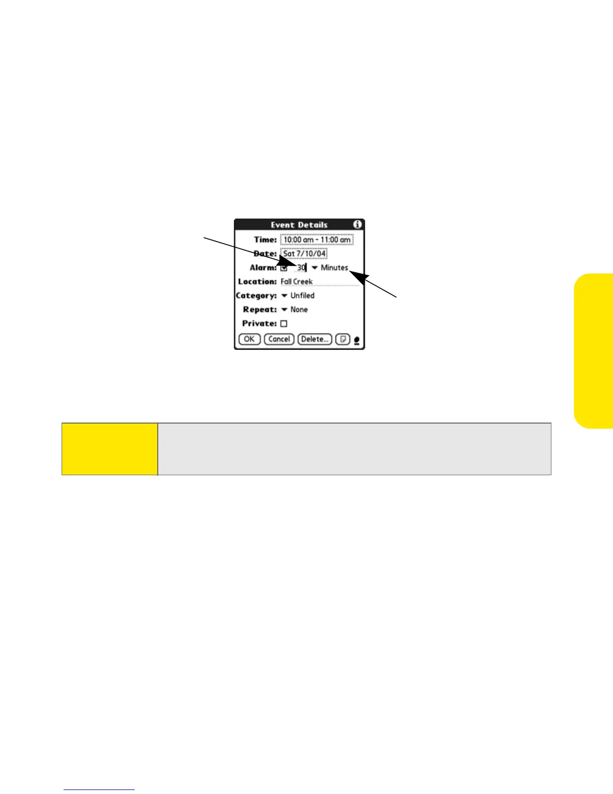 3. Check the Alarm box, and then select the number of minutes, hours, or days