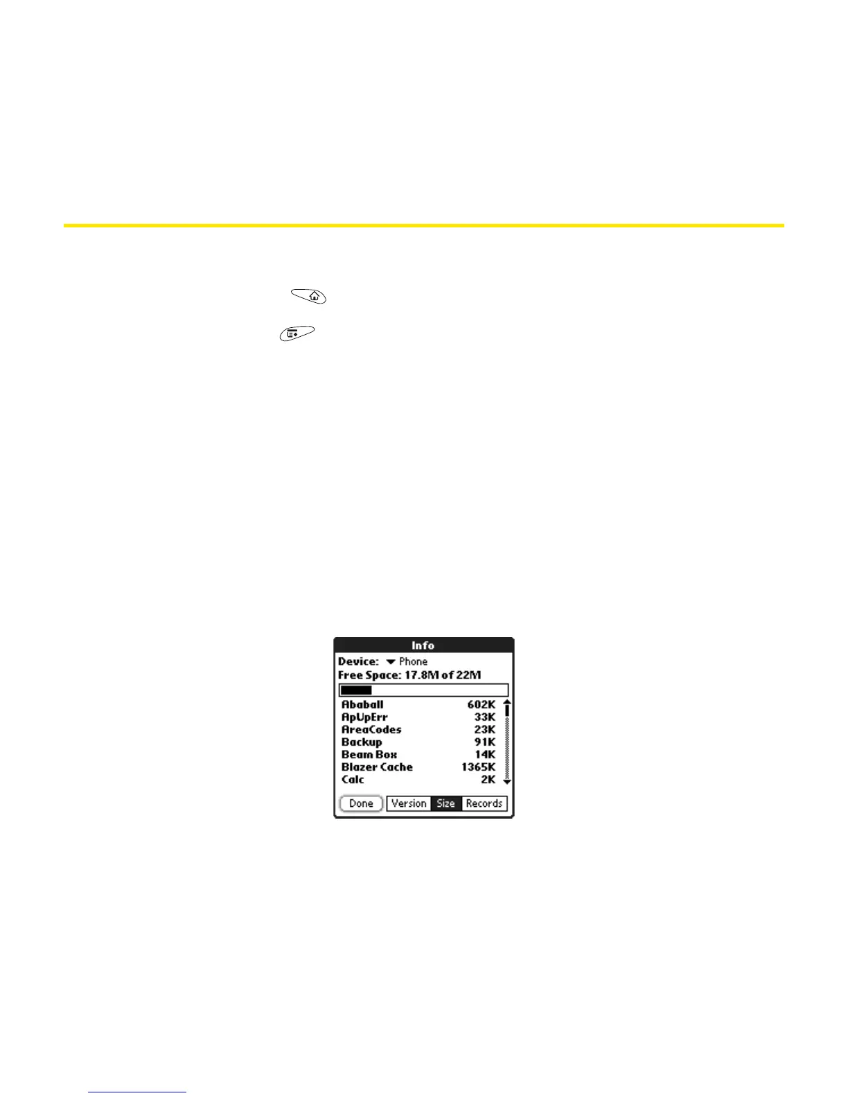 䡲 Version displays the version numbers of applications on your Treo 650.