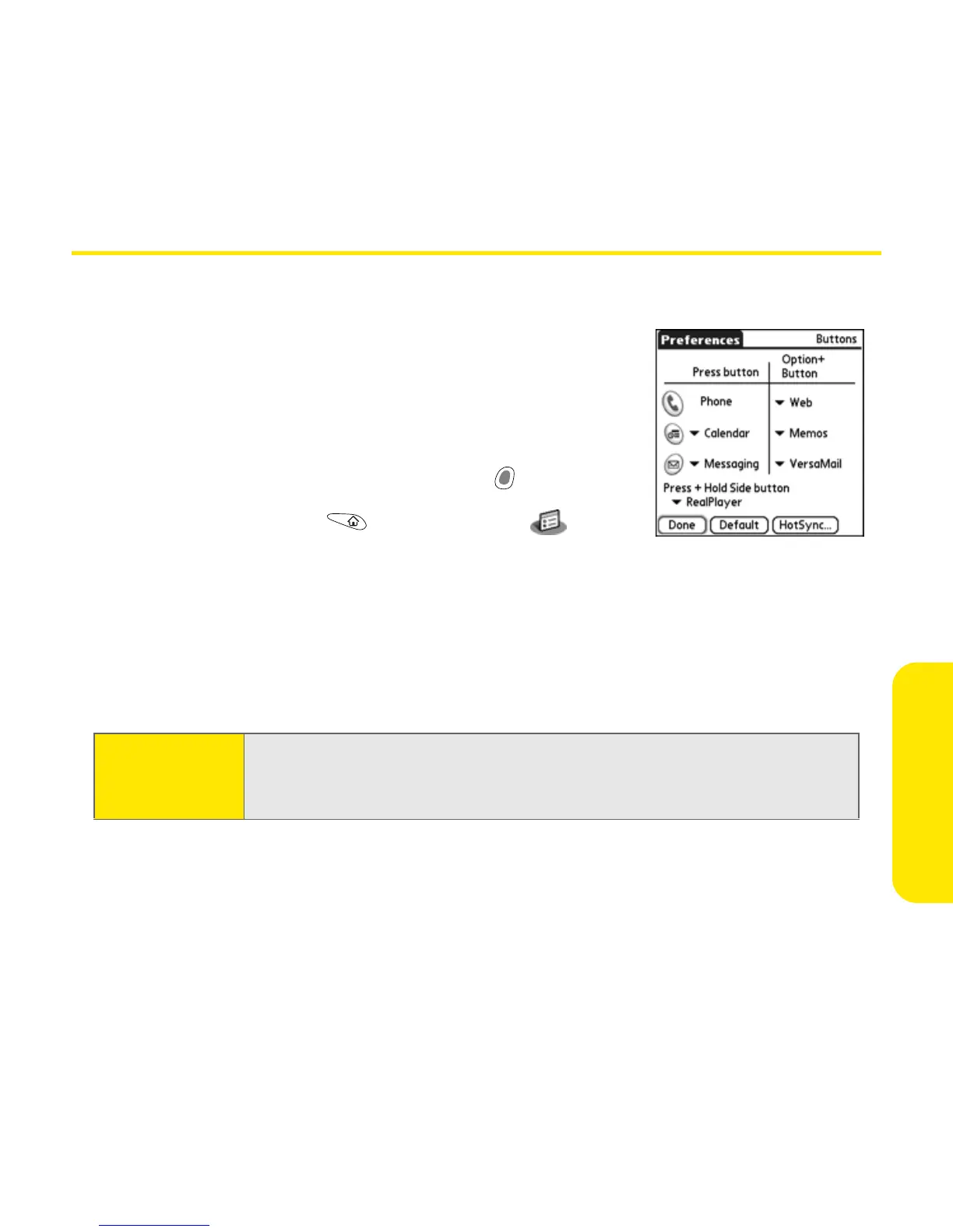 HotSync button on the sync cable. To restore all of the buttons and key